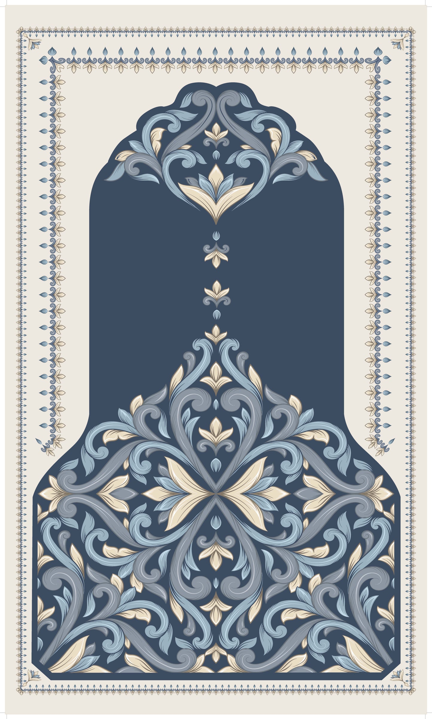 3-layered Prayer Mat padded with a 2 cm thickness sponge for an ultimate comfort & coziness experience. To ensure maximum durability, the back of the mat is reinforced with a white back layer. Additionally, the mat comes with a set of hand-made tassels adding an extra touch of beauty to its already stunning design. The high-quality the padded prayer mat improves body posture and reduces joint pain, gives relief to your knees, and helps in submissiveness in prayer.